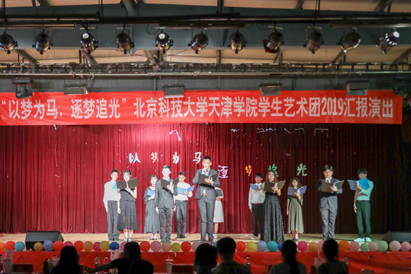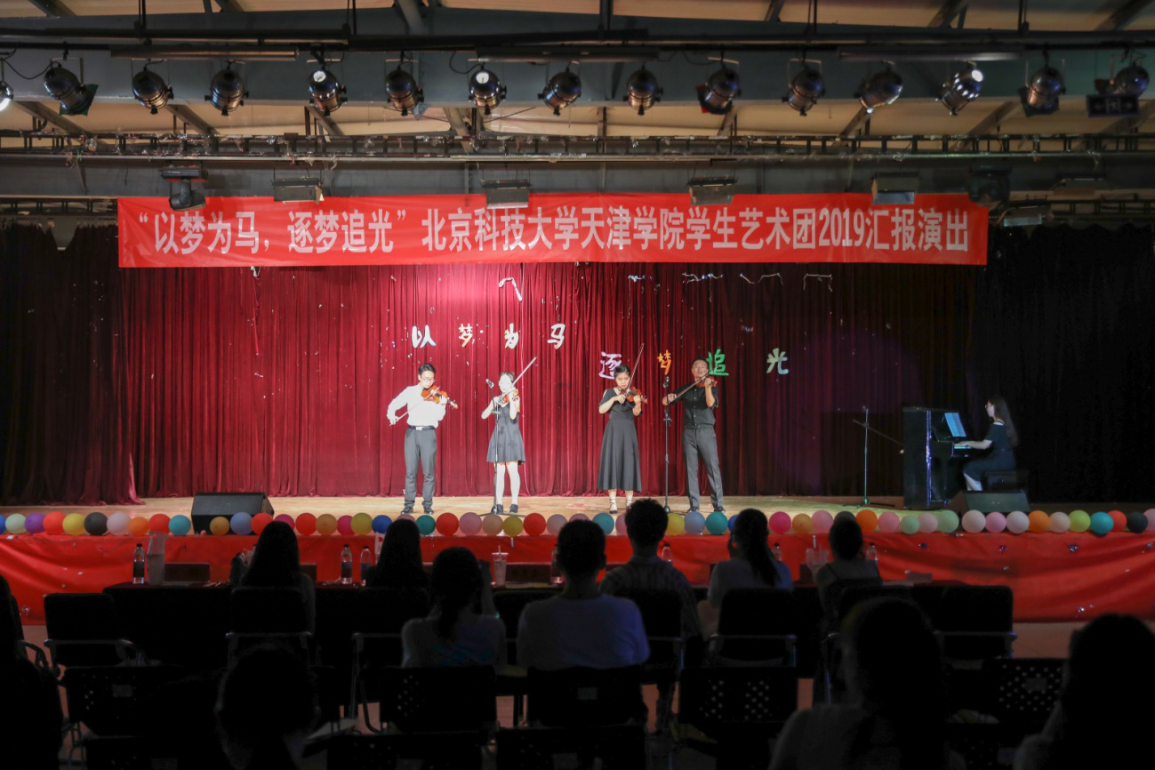 6月12日晚7點,北京科技大學天津?qū)W院學生藝術(shù)團成功舉辦“以夢為馬,逐夢追光”匯報演出。演出當晚,蒞臨本次匯報演出的嘉賓有藝術(shù)學院黨總支書記、副院長、藝術(shù)教育中心主任林碧蕓,藝術(shù)教育中心常務副主任、學生藝術(shù)團團長韓程羽,外語系黨總支副書記、宣傳部副部長張?zhí)砩疲瑢W生藝術(shù)團民樂團指導教師、藝術(shù)系作曲與基礎(chǔ)理論教研室主任陳倩,學生藝術(shù)團管弦樂團指導教師、藝術(shù)系分團委書記張悅,學生藝術(shù)團國禮主戲指導教師盛鑫娜以及學院各社團優(yōu)秀干部和學生藝術(shù)團全體成員,與我們共同觀看了本次匯報演出。