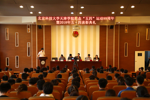 在五四青年節(jié)到來之際,習(xí)近平總書記于5月2日到北京大學(xué)考察并發(fā)表總要講話,對廣大青年提出了五點(diǎn)要求。為進(jìn)一步學(xué)習(xí)領(lǐng)悟習(xí)近平總書記重要講話精神,繼承“五四”傳統(tǒng),弘揚(yáng)“五四”精神,表彰在團(tuán)學(xué)工作中作出突出貢獻(xiàn)的先進(jìn)集體和個人。2018年5月3日,北京科技大學(xué)天津?qū)W院紀(jì)念五四運(yùn)動九十九周年暨2018年五四表彰典禮在理工館學(xué)術(shù)報告廳隆重舉行。北京科技大學(xué)天津?qū)W院黨委副書記葉振楠、學(xué)生處副處長田勇、團(tuán)委書記殷實(shí)、團(tuán)委副書記王研、李洋以及各院系分團(tuán)委書記、各團(tuán)學(xué)組織指導(dǎo)老師、各基層團(tuán)組織負(fù)責(zé)人以及團(tuán)員代表共200余人參加此次典禮。團(tuán)委副書記張?zhí)砩?/span>主持典禮。