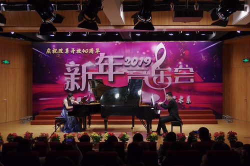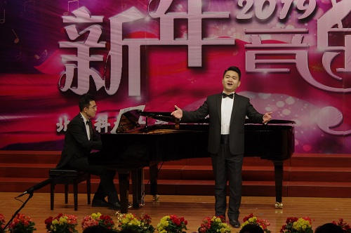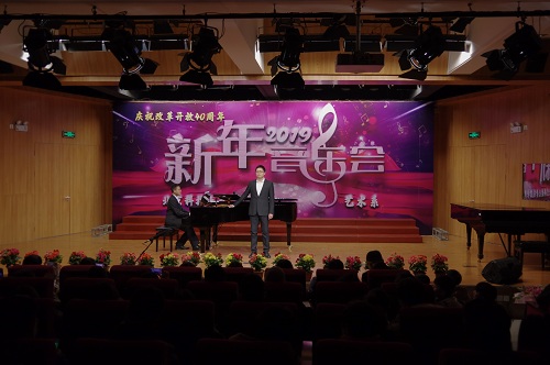 1月2日晚19:00,由北京科技大學(xué)天津?qū)W院藝術(shù)系主辦,藝術(shù)聲樂(lè)教研室教工黨支部、藝術(shù)鋼琴教研室教工黨支部、藝術(shù)學(xué)生黨支部承辦的“慶祝改革開(kāi)放四十周年暨2019新年音樂(lè)會(huì)”在弘藝音樂(lè)廳精彩上演。北京科技大學(xué)天津?qū)W院院長(zhǎng)王斌,黨委書(shū)記丁煦生,黨委副書(shū)記白亮、葉振楠、牛犁,財(cái)務(wù)總監(jiān)王俊敏,學(xué)術(shù)委員會(huì)主席宋存義,教務(wù)處處長(zhǎng)張建華,傳統(tǒng)文化研究院副院長(zhǎng)胡寶嘉,環(huán)境工程系主任汪群慧,外語(yǔ)系主任梁素芹,藝術(shù)系主任胡建華,科學(xué)研究處副處長(zhǎng)羅富臣,學(xué)生處常務(wù)副處長(zhǎng)田勇,法律系黨總支書(shū)記馮海燕,藝術(shù)系副主任林碧蕓及200余名師生參加了本次音樂(lè)會(huì),飽享了一場(chǎng)精彩絕倫的音樂(lè)盛宴。