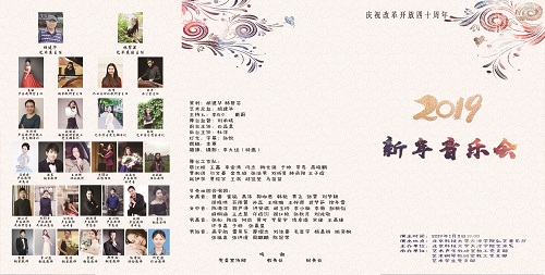 音樂(lè)會(huì)在雙鋼琴演奏《春節(jié)序曲》中拉開(kāi)了帷幕,奏響了喜迎新年的歡快樂(lè)章;《多情的土地》抒發(fā)了對(duì)祖國(guó)、對(duì)故鄉(xiāng)的無(wú)比眷戀和贊美之情;鋼琴獨(dú)奏《獵歌》明朗,積極向上;《跳蚤之歌》極富表現(xiàn)力和戲劇性;《李斯特第一鋼琴協(xié)奏曲》輝煌感人,充滿熱情;《上一道坡坡下一道梁》響遏行云,蕩氣回腸;《我的深情為你守候》表達(dá)了中華兒女英勇頑強(qiáng)的精神及誓死捍衛(wèi)祖國(guó)的理想信念;《祖國(guó)像媽媽一樣》展現(xiàn)了在改革開(kāi)放初期火熱的年代里的人們,充滿理想、充滿期望、振興中華的心聲和情懷;《蝶戀花?答李淑一》展現(xiàn)了毛澤東主席詩(shī)詞的雄渾磅礴氣勢(shì)與浪漫主義革命情懷;四手聯(lián)彈《紅蓮的弓矢》展現(xiàn)了絕不認(rèn)輸,追求真理的信念;貝殼田園合唱團(tuán)帶來(lái)的《時(shí)間都去哪兒了》旋律舒緩而深情,將父母之愛(ài)表達(dá)的震撼人心,真摯的演繹引起了觀眾的共鳴;四重唱《飲酒歌》音樂(lè)輕快熱烈,充滿青春氣息;精彩紛呈的演出在合唱《難忘今宵》中緩緩地落下了帷幕。