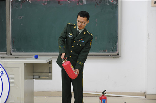 晚上7點,8教108教室,消防安全知識講座在大家熱烈的掌聲中正式開始。顧隊長向大家講解了火災發生的原因、安全用電的必要性、火災發生時逃生技巧以及如何撥打報警電話準確提供火場信息,并在現場教授同學們如何使用滅火器。隨后消防戰士王巳賦現場演示并教授學生消防服及配件的穿戴方法,并邀請了幾名同學親身試穿了消防官兵的“戰斗服”,穿著厚重的消防服,同學們深深的體會到了消防官兵的辛勞與不易。消防官兵的精彩講解與演示后,風趣的知識問答環節再次調動起了同學們的熱情,現場氣氛熱烈,同學們積極參與,知識問答環節顧隊長耐心講解相關知識。