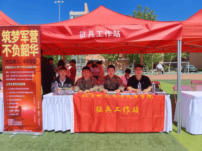 本次雙選會現場設置征兵政策宣傳展位,利用宣傳欄、張貼海報、懸掛條幅、發放征兵宣傳冊、畢業生征兵入伍政策明白紙以及現場宣講等多種形式,吸引大批在校生和畢業生前來咨詢。寶坻區人武部征兵工作人員、學院征兵工作站干事以及戎程研究會退役大學生為有參軍意向的同學進行了一對一溝通指導,對涉及應征入伍優惠政策、保留學籍、學費減免、部隊生活及有關報名、體檢、政審等具體問題進行詳細宣講,使我校畢業生充分了解今年大學生入伍的各項政策。