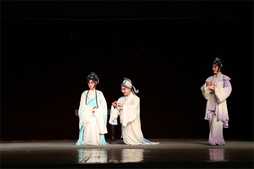藝術(shù)教育中心常務(wù)副主任韓程羽,團(tuán)委宣傳部部長、外語系分團(tuán)委書記張?zhí)砩疲囆g(shù)系分團(tuán)委書記李洋,藝術(shù)教育中心學(xué)生藝術(shù)團(tuán)指導(dǎo)教師盛鑫娜等500余名師生觀看了演出。隨著雷鳴般的掌聲響起,昆曲《西廂記》在金沙城js93線路檢測中心拉開了帷幕。