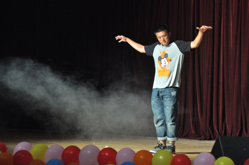 整個晚會分上下兩個篇章進(jìn)行,七點整在主持人激情的開場白中拉開了帷幕,首先由學(xué)生藝術(shù)團常務(wù)副團長胡孟居發(fā)表演講,緊接著由藝術(shù)團新團員代表侯林林發(fā)言,學(xué)生藝術(shù)團團長林碧蕓老師也向全場致以激情洋溢的新生致辭,博得了大家熱烈的掌聲。然后學(xué)生藝術(shù)團各副團長向大家介紹了藝術(shù)團各部門基本情況和各自的職能,其中有職能部門和演出部門,職能部門包括辦公室、演出管理中心、文化宣傳中心、外聯(lián)事務(wù)中心。演出部門包括管樂團、民樂團、合唱團以及舞蹈團四大社團以及主持人隊、禮儀隊、戲劇社和國旗班。精彩的演說讓大家對藝術(shù)團有了更深的認(rèn)識和了解,為同學(xué)們今后在藝術(shù)團更好的工作和學(xué)習(xí)鑒定了良好的基礎(chǔ)。至此上篇結(jié)束,下篇的精彩節(jié)目也讓大家很是期待。管樂團的合奏《歡樂頌》為晚會的下篇吹響了號角,輕松愉悅的節(jié)奏讓現(xiàn)場的氣氛很是融洽;接著由辦公室送出二人對唱《一個像夏天一個像秋天》,深情地對唱讓大家陶醉在了其中;舞蹈團街舞社也帶來了青春洋溢、活力四射的群舞《Low》。一個個精彩紛呈的節(jié)目隨之上演——由演出管理中心二人深情對唱了《老男孩》,戲劇社也獻(xiàn)上了精彩的小品《新生那點事》,惹得現(xiàn)場觀眾陣陣大笑;禮儀隊和國旗班也不甘示弱,溫馨浪漫的歌伴舞《戀愛達(dá)人》仿佛讓大家置身戀愛的海洋,感受愛情的浪漫。外聯(lián)事務(wù)中心的獨唱《開始懂了》又把大家?guī)Щ亓爽F(xiàn)實,陷入了對感情的沉思。舞蹈團民舞團的舞蹈《藝術(shù)體操》和《詠春》把大家?guī)нM(jìn)了藝術(shù)的殿堂,讓大家感受到了民舞的魅力和美感。接下來民樂團也合奏了輕松歡快的《賽馬》和《哆啦A夢》,合唱團的歌曲串燒《星晴》、《喜歡寂寞》、《瀟灑小姐》、《我》、《我期待》,這一首首風(fēng)格各異,但都給人似曾相識之感的歌曲在不同歌手的演唱中也帶給人不同的回憶與感觸。最后,主席團成員勁爆的熱舞《江南style》把現(xiàn)場的氣氛推向最高潮,同時也為本次晚會畫上了圓滿的句號。縱觀整場晚會,氣氛歡快、基調(diào)熱烈,藝術(shù)團全體成員通過演唱、舞蹈、管樂合奏、民樂合奏等藝術(shù)形式,為全場觀眾奉獻(xiàn)了一場飽含激情、別具特色的演出。