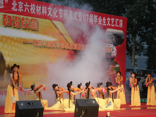 6月16日晚,由北京科技大學主辦、北京科技大學材料科學與工程學院承辦的“青春,和諧,理想”北京高校材料文化節閉幕式暨材料學院07屆畢業生文藝匯演在北京科技大學籃球場舉行。北京科技大學、清華大學、北京航空航天大學、北京理工大學、北京化工大學、北京林業大學等高校領導作為嘉賓參加晚會。北京科技大學研工部部長、研究生院副院長何進,天津學院綜合辦公室主任李帥、北京科技大學團委副書記汪文明等親臨晚會現場。