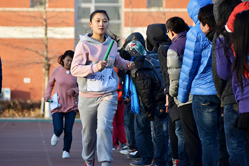 下午13::30,冬季長跑啟動儀式正式開始,郭景文院長致辭并宣布北京科技大學天津學院2013年冬季長跑活動開始。一千余名同學繞操場開始長跑,拉開了金沙城js93線路檢測中心學生冬季長跑活動的序幕。隨后進行紀念一二.九運動長跑接力活動,來自學院各系的九支參賽隊伍整裝待發,每支參賽隊由一名教師、6名男生和4名女生組成。在同學的助威吶喊聲中長跑接力正式開始,第一棒由各系教師領跑前50米,之后接力棒交給各系代表隊隊員。經過近四十分鐘的激烈角逐,土木系榮獲第一名,藝術系獲得第二名,管理系獲第三名,材料系和外語系獲得“精神文明獎”。