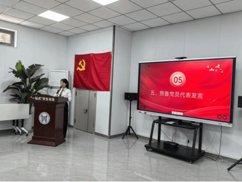 新發展黨員代表材料與環境學院張嚴心同志在發言中,深情表達了對黨的感恩與向往,分享了自己在入黨過程中的成長與感悟,并鄭重承諾,將以黨員標準嚴格要求自己,在工作、學習和生活中發揮先鋒模范作用,踐行入黨誓言,為黨和人民的事業貢獻自己的全部力量。
