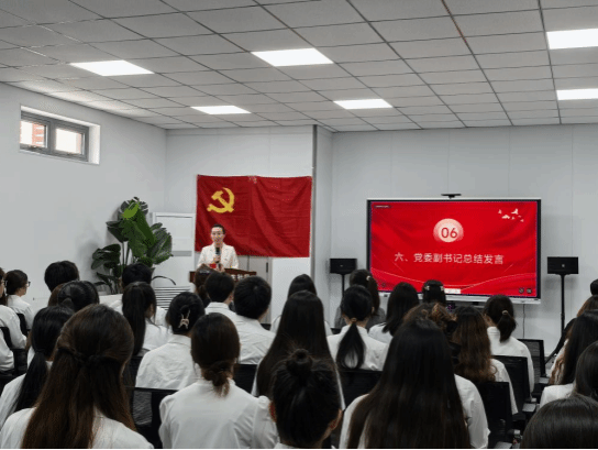 最后,黨委副書記郭雅娟講話。她首先向新發展黨員的政治覺悟和積極表現給予充分肯定。同時,對全體新發展黨員提出殷切期望,希望大家牢記入黨誓言,堅定理想信念,不斷加強理論學習,提升黨性修養;錘煉過硬本領,在學習工作中爭當表率,發揮先鋒模范作用;永葆為民初心,主動服務師生群眾,用實際行動踐行“一名黨員就是一面旗幟”的誓言。