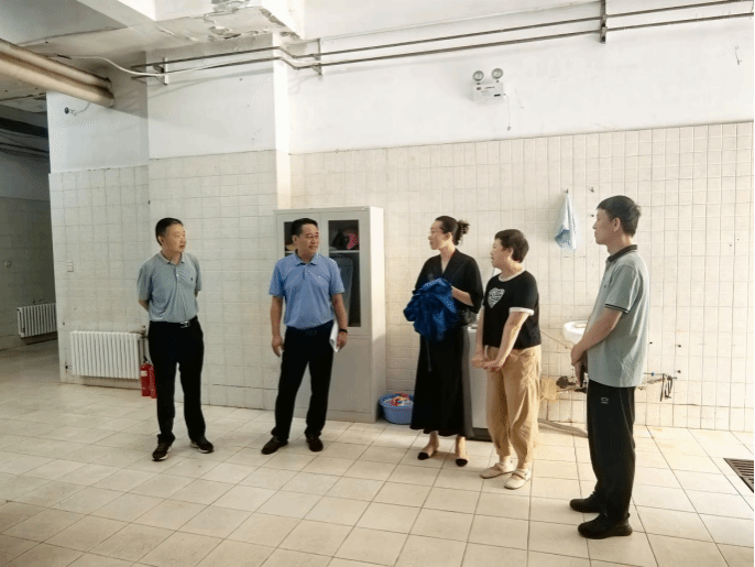 院長丁煦生、副院長張永鋒、副院長兼財務總監王俊敏、黨委副書記郭雅娟等領導在相關部門的陪同下,深入教學樓、宿舍樓、體育館會議室等施工現場,詳細了解了教學保障提升改造、體育館會議室修葺及新生宿舍樓改造等項目的具體安排、進展情況以及所面臨的困難和挑戰。丁院長認真聽取了現場匯報,對暑期校園提升改造工作給予了充分肯定,提出“嚴把安全生產,保障施工質量”的重要指示,并對大家在高溫酷暑下堅守崗位、默默奉獻的精神表示了高度贊揚。