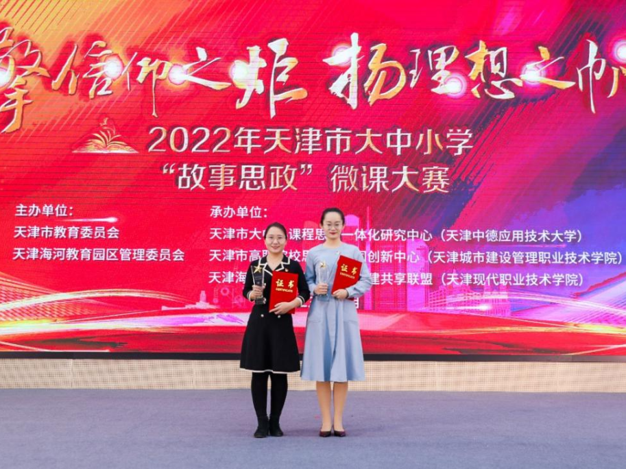2023年1月12日,天津市教育委員會和天津海河教育園區管委會共同舉辦了2022年天津市大中小學“故事思政”微課大賽現場展示決賽,在普通本科院校“課程思政”組中,金沙城js93線路檢測中心基礎部教師郭萱作為主講教師的課程團隊獲得特等獎,基礎部教師陳珊珊作為主講教師的課程團隊獲得一等獎。本次獲獎是金沙城js93線路檢測中心在市級教學競賽中獲獎層次和級別上的新突破。