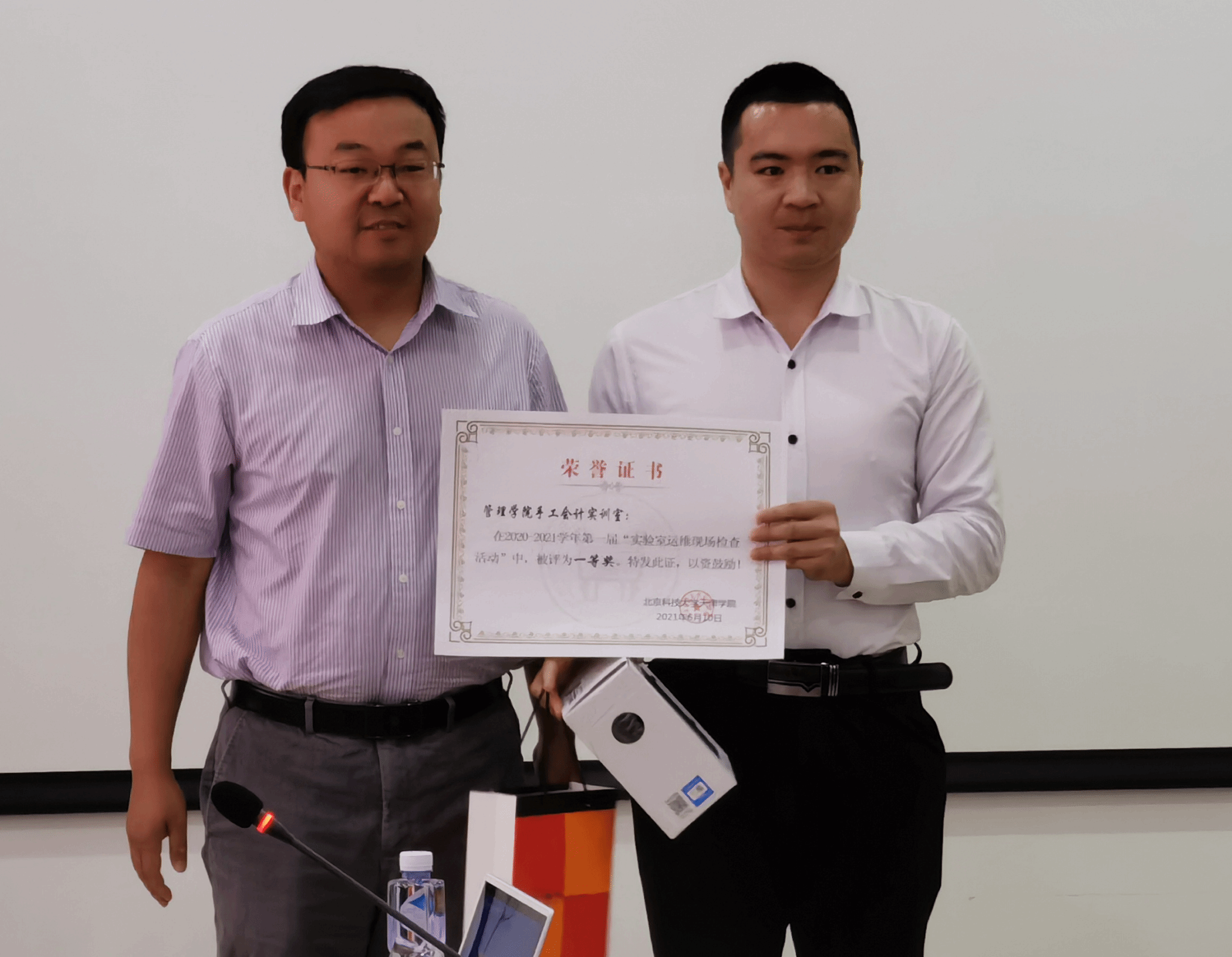 此次運維檢查活動頒獎儀式于6月10日上午10點在12教300會議室舉行,運行維護科科長王偉冬主持頒獎儀式,由黨委副書記牛犁、教務(wù)長張建華、實驗室管理中心主任陳寶江、實驗室管理中心副主任張利依次頒發(fā)一等獎、二等獎、三等獎并合影留念。
