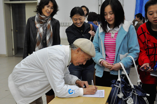 講座結(jié)束后李心燦教授位同學(xué)們簽名留念