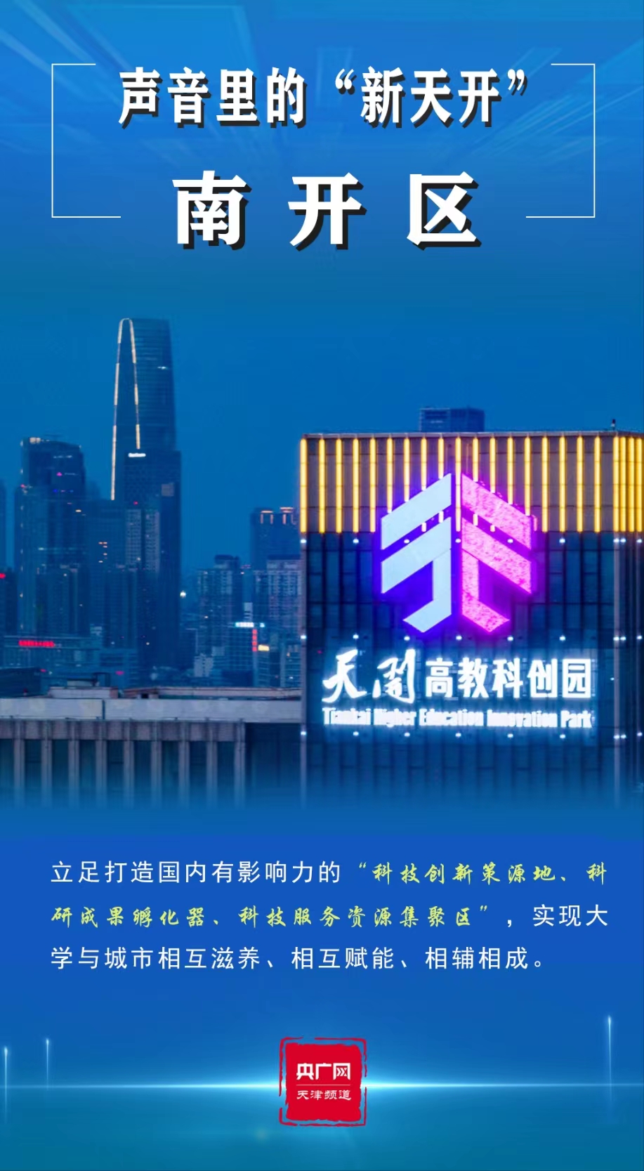 央廣網天津5月12日消息 2023年是全面貫徹黨的二十大精神的開局之年。寅末卯初,天津市委經濟工作會議召開,高站位、高標準謀劃“十項行動”,逐步將黨的二十大擘畫的宏偉藍圖推向實景。其中,一個響亮的名字——“天開高教科創園”(以下簡稱“天開園”)引發廣泛關注。“天開”,既融合了南開大學、天津大學兩所百年名校,亦有得天獨厚、開拓進取等寓意,為人們帶來無限想象空間,可謂石破“天開”。