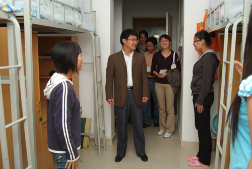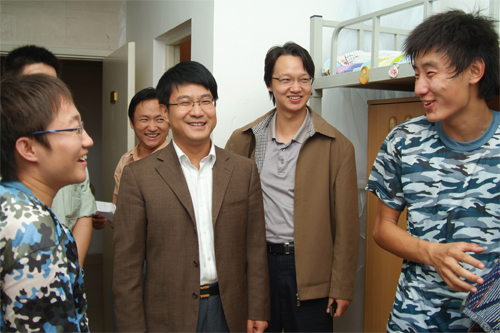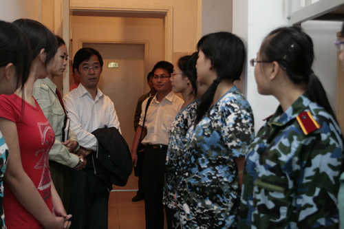 在寢室,院領(lǐng)導(dǎo)與新生親切交談,詳細(xì)詢問(wèn)新生到校后的感受。院領(lǐng)導(dǎo)勉勵(lì)新生,要盡快完成從中學(xué)生到大學(xué)生的角色轉(zhuǎn)換,適應(yīng)大學(xué)生活,頑強(qiáng)拼搏,奮發(fā)向上,做一名“學(xué)以致用,全面發(fā)展”的合格的大學(xué)生。院領(lǐng)導(dǎo)還叮囑新生,要注意身體健康,防范甲流疫情,注意安全,互相幫助,也要常打電話回家和父母聊聊天。遇到還沒(méi)離校的新生家長(zhǎng),院領(lǐng)導(dǎo)向他們介紹了學(xué)校情況,告訴家長(zhǎng),學(xué)校每一名教職工都會(huì)把學(xué)生當(dāng)作自己的孩子一樣對(duì)待,請(qǐng)家長(zhǎng)放心。