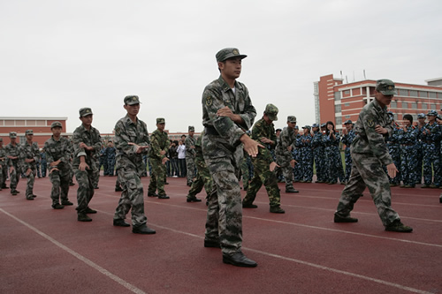軍訓科目匯報表演:男兵方陣擒拿拳表演