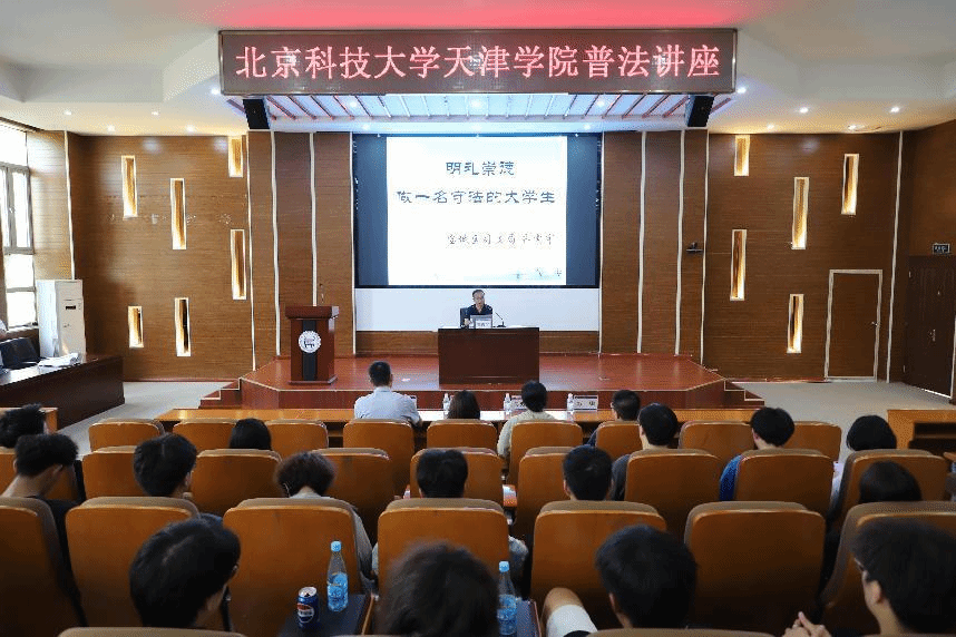 為全面學(xué)習(xí)宣傳貫徹習(xí)近平法治思想,特別是習(xí)近平總書(shū)記“讓民法典走到群眾身邊、走進(jìn)群眾心里”的重要指示精神,5月22日,學(xué)院邀請(qǐng)?zhí)旖蚴袑氎鎱^(qū)司法局行政復(fù)議審理與應(yīng)訴科科長(zhǎng)齊震宇作普法講座。師生代表200余人共同聆聽(tīng)。