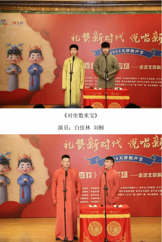 12月5日晚,“禮贊新時代 說唱新生活——2024天津相聲節”《魚龍百戲》相聲專場走進北京科技大學天津學院。此次活動由市委宣傳部、市文聯、市文化和旅游局、天津海河傳媒中心、南開區人民政府、北方演藝集團主辦,市曲藝家協會、天津廣播電視臺文藝頻道、南開區委宣傳部、區文化和旅游局、區文聯共同承辦。