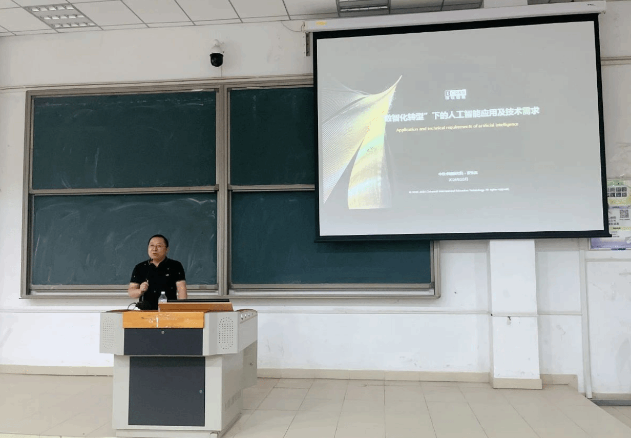 隨后,中軟國際教育科技集團天津公司卓越研究院院長張懷亮為同學們帶來了題為“‘數智化轉型’下的人工智能應用”的精彩演講。他深入淺出地講解了數智化轉型的必然趨勢,以及人工智能在這一過程中的關鍵作用。通過生動的案例和詳實的數據,讓同學們對人工智能的應用前景有了更加清晰地認識。