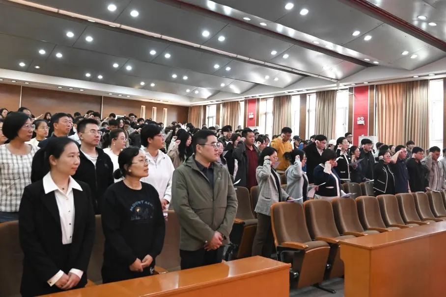 丁煦生院長代表學院領導班子對新入職教職工表示了熱烈歡迎,并為大家作了題為“堅持立德樹人根本任務,共同書寫‘強國建設,天院何為’新篇章”的專題報告。