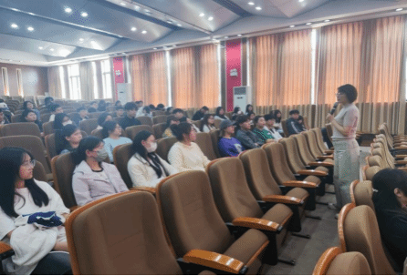 講座中,張老師特別強調“真聽真看真感受”的表演理念,引導聽眾通過“我就在和我就是”的情境代入,體會語言表達的真實性和感染力。她結合生活場景,解析如何在日常溝通中運用朗誦技巧提升表達效果,并與現場學生進行即興互動,指導同學們如何通過氣息控制、發音吐字等基本功優化語言表現力。學生們積極參與,現場氣氛熱烈。