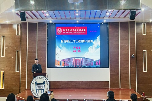 聘任儀式結(jié)束后,嚴加寶教授在理工館學(xué)術(shù)報告廳做了主題為“極地寒區(qū)土木工程材料與結(jié)構(gòu)”的專題講座。報告以極寒地區(qū)重大工程建設(shè)需求為背景,介紹了土木工程材料和結(jié)構(gòu)在極寒環(huán)境中的力學(xué)性能演化特征,獲得了一系列具有國際先進性的創(chuàng)新科研成果,為國家重要工程設(shè)施的建設(shè)提供了重要科學(xué)技術(shù)支撐。