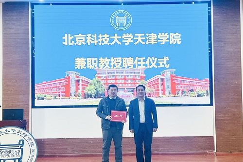 王卲臻副院長簡要介紹了城建學(xué)院市級一流本科專業(yè)建設(shè)的進展情況,闡述了融智建設(shè)高水平教學(xué)團隊的必要性和助推一流本科專業(yè)的意義,宣布聘請?zhí)旖虼髮W(xué)嚴加寶教授為北京科技大學(xué)天津?qū)W院兼職教授,隨后由天津?qū)W院副院長張永鋒為嚴加寶教授頒發(fā)聘書。