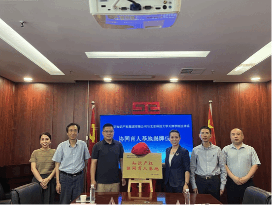 彭鵬主任和馬敬總經(jīng)理共同為“知識產(chǎn)權(quán)協(xié)同育人基地”揭牌