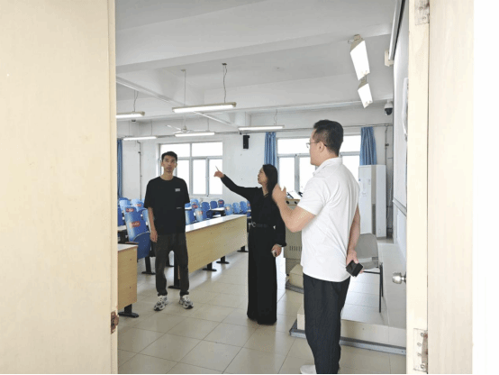 副院長兼財(cái)務(wù)總監(jiān)王俊敏檢查9教多媒體教室