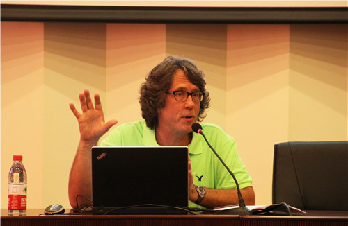 6月24日上午8時(shí),克萊蒙特研究生大學(xué)大衛(wèi)·帕格爾(David Pagel)教授、易凱教授為廣大分別做了主題為“藝術(shù)在我們的文化中的作用”、“藝術(shù)教育和留學(xué)在美國(guó)”的專題講座,由視覺(jué)傳達(dá)專業(yè)李文紅老師主持,近200名學(xué)生參加了此次講座。