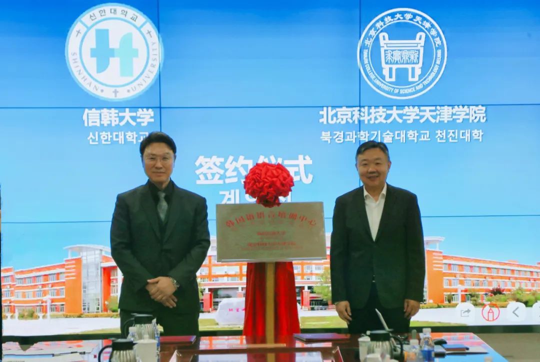 康圣鐘校長和丁煦生院長為韓國語語言培訓(xùn)中心揭牌