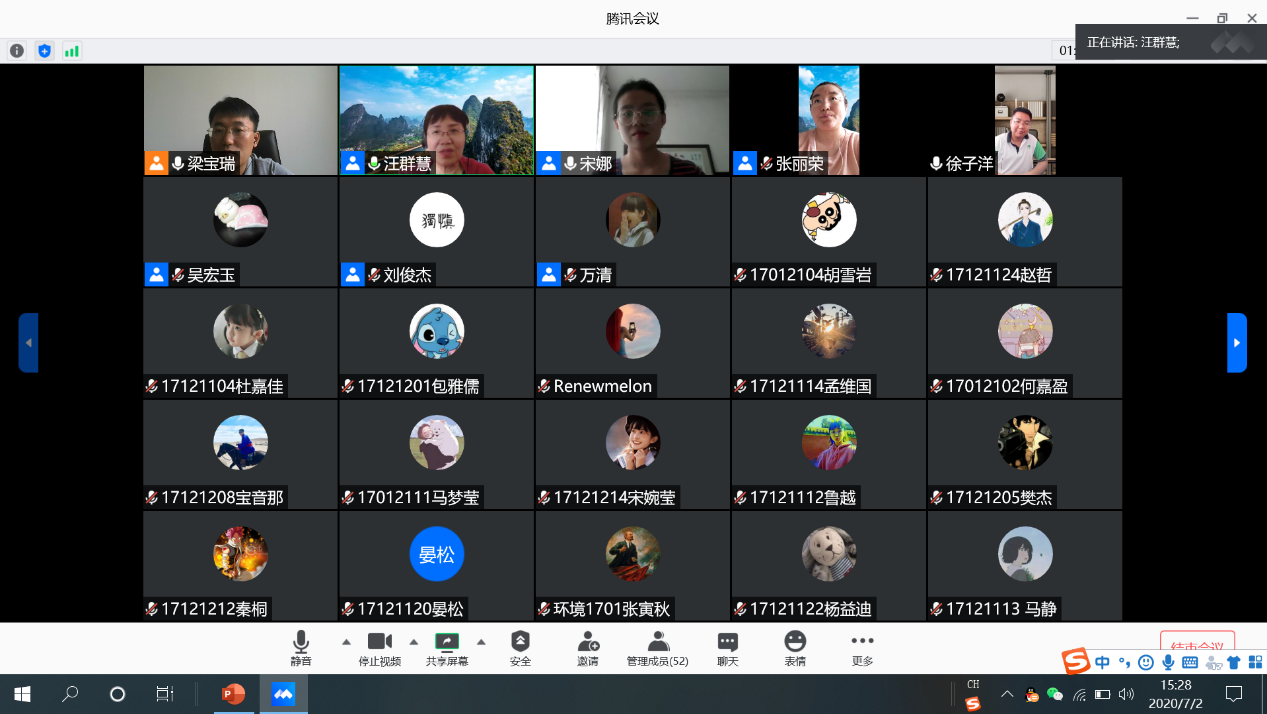 7月2日城建學院環境工程系在線舉行了疫期教學總結會,同時給返校的17級學生進行了暑期學習任務的動員。會上,梁寶瑞老師對疫期教學情況及暑期實習實踐的重要性進行了說明,宋娜老師對暑期學生們的畢設工作進行了詳細安排,最后由環境工程系主任汪群慧教授進行了總結發言。