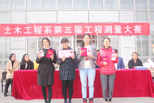 本次測量大賽,經過理論知識筆試的初賽選拔,共有10支隊伍進入決賽。經過緊張激烈的技能測試決賽,最終由馬舒琴、覃悅、羅瑩瑩、任玥頤四名同學組成的參賽小組榮獲本次大賽團隊一等獎,蒙秋莎、張思迪、羅瑩瑩同學榮獲優秀個人獎。土木工程系第三屆工程測量大賽在熱烈的掌聲中圓滿完成。