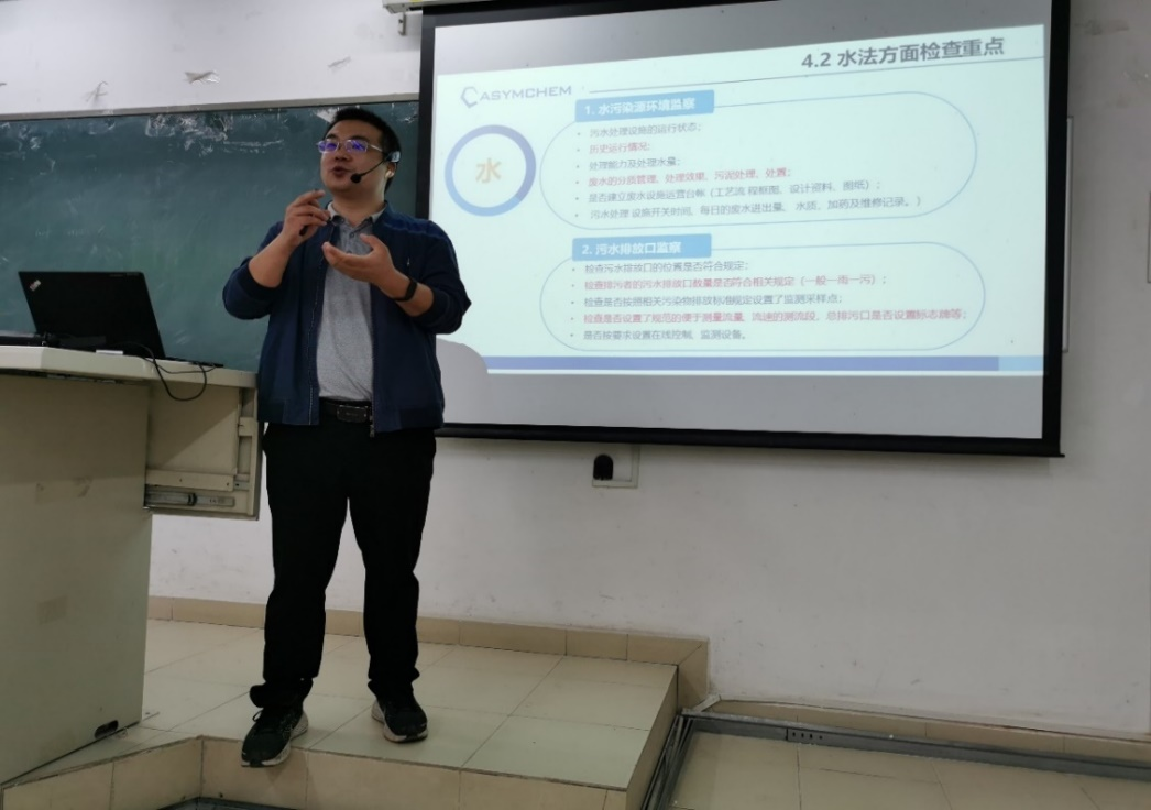 凱萊英醫(yī)藥集團EHS部門熊先清主管為同學們上了一堂深刻的環(huán)保安全教育課,首先他從企業(yè)實際環(huán)保管理角度,從建設項目、水處理、廢氣處理、危險廢物管理和環(huán)保應急管理角度介紹了環(huán)保相關的法律法規(guī),并詳細講述了環(huán)境專業(yè)的畢業(yè)生如何成長為一名專業(yè)的EHS(環(huán)保、健康、安全)管理人員。他告訴同學們:一定要堅守安全底線,嚴守環(huán)保紅線,EHS保護的是每一個人最基本的利益,學會如何保護自己和工友免受傷害、不受職業(yè)疾病困擾。同時他還鼓勵同學們在大學中努力學習專業(yè)知識,夯實專業(yè)基礎,擴大知識面,培養(yǎng)和鍛煉自己解決問題的能力,學以致用。特別要注意培養(yǎng)自己的溝通、組織能力及團隊合作精神,爭取更快的脫穎而出成為一名合格的環(huán)保人才。