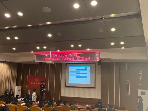 為維護我們安靜的學習環境,提高防范意識,使同學們在平時的生活中遠離詐騙分子,圓滿的完成自己的學業,機械工程系于12月1日下午5點在理工圖書館學術報告廳舉辦了以“防范電信詐騙,共建平安校園”的情景劇活動。此次活動到場的有機械工程系分團委書記張軍老師、材料系19級輔導員韓子玉老師以及機械系分團委、學生會主席團和部長團成員。