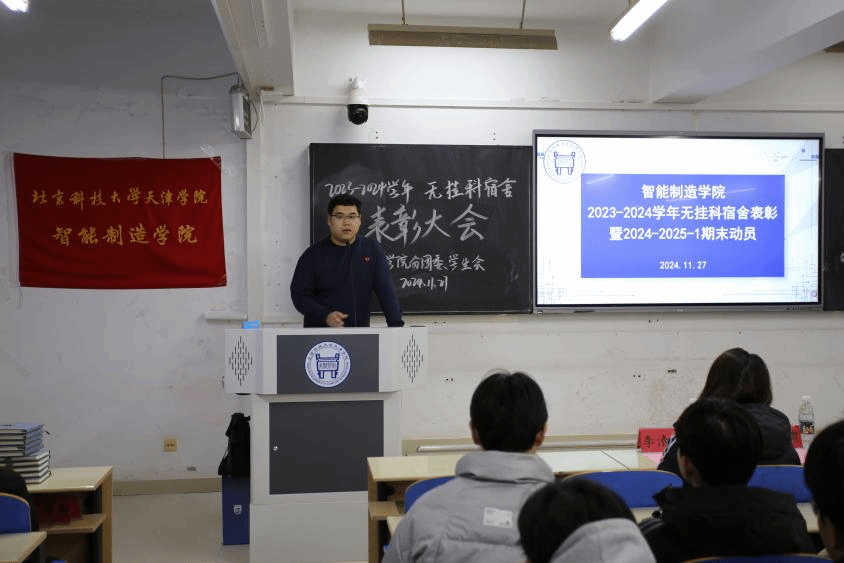 為表彰先進(jìn)典型、樹立學(xué)習(xí)標(biāo)桿,激發(fā)廣大學(xué)生的學(xué)習(xí)熱情,智能制造學(xué)院分團(tuán)委、學(xué)生會(huì)于11月27日下午在9教104舉辦2023-2024學(xué)年無掛科宿舍表彰大會(huì)暨2024-2025-1期末動(dòng)員,智能制造學(xué)院院長朱超甫、黨總支書記陳月、副院長班嵐、2023-2024級輔導(dǎo)員出席,200余名學(xué)生干部參加,活動(dòng)由分團(tuán)委書記李雲(yún)嘯主持。