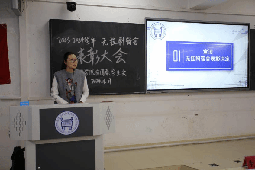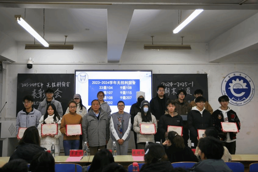 朱超甫院長與陳月書記共同為2023-2024學(xué)年無掛科宿舍頒發(fā)榮譽(yù)證書及紀(jì)念品。