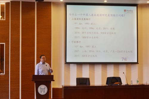 講座過(guò)程中韓亮教授最先講述其作為一名華人在英國(guó)研究美國(guó)銀行問(wèn)題的原因,隨后教授更為精細(xì)的講解了浦東銀行的發(fā)展?fàn)顩r和發(fā)展方向,緊接著用兩個(gè)研究案例分析了美國(guó)銀行的市場(chǎng)與發(fā)展。最后韓亮教授辯證講解了銀行競(jìng)爭(zhēng)和壟斷兩方面的不利點(diǎn)。