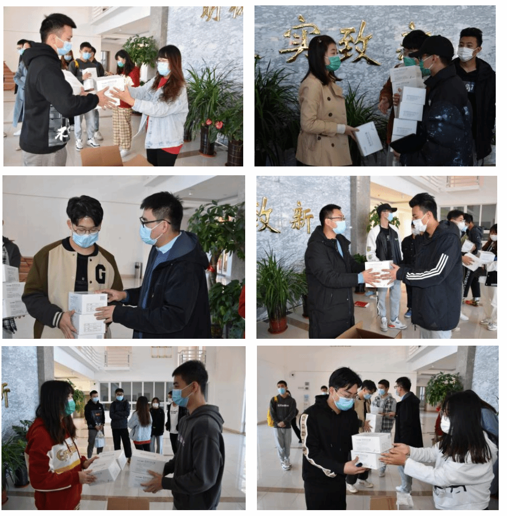 經(jīng)濟(jì)學(xué)院老師和輔導(dǎo)員為學(xué)生發(fā)放口罩