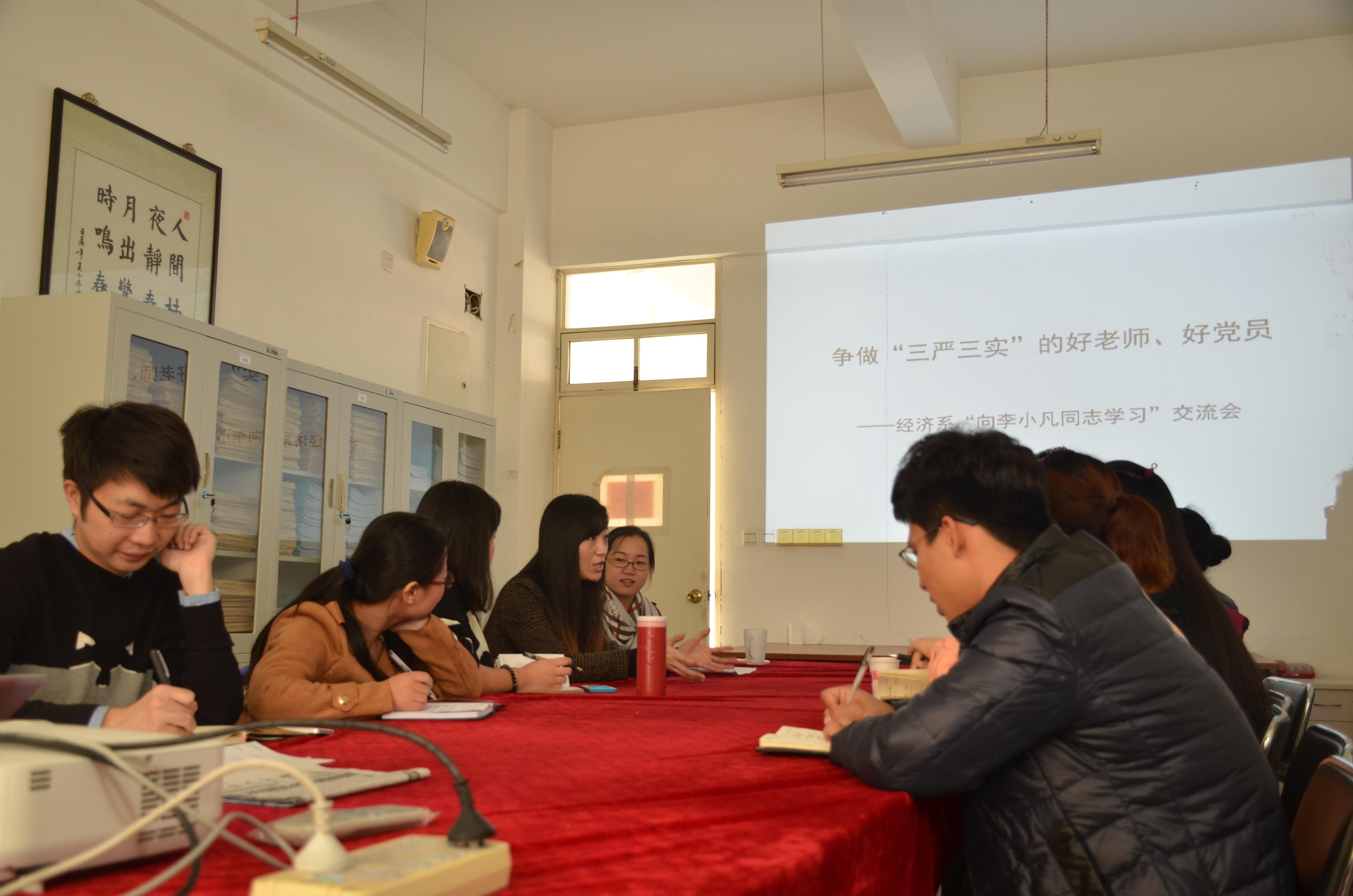 與會人員積極發(fā)言,現(xiàn)場氣氛熱烈,多名教師從經(jīng)濟(jì)系學(xué)生特點(diǎn)出發(fā),結(jié)合自身實(shí)際工作暢談工作感想。通過學(xué)習(xí)交流,教師們紛紛表示李小凡老師是一個(gè)平凡的好人,但在平凡中見證著偉大,是我們身邊看得見、摸得著、學(xué)得了的現(xiàn)實(shí)榜樣。與會教師表示要從加強(qiáng)課業(yè)指導(dǎo),關(guān)心學(xué)生生活等方面切實(shí)落實(shí)李小凡同志“課比天大,慈愛如父”的為師之道,為人之道,在實(shí)際工作中踐行“三嚴(yán)三實(shí)”精神,