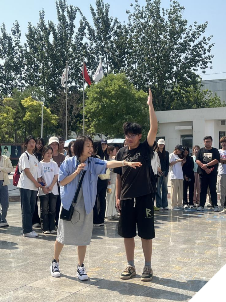 此次赴企業參觀,同學們現在工作人員的引領和介紹下體驗了園區地面上的太陽投影鐘——日晷,了解了古人計時的方式與智慧。