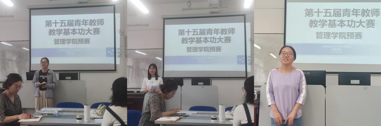 首先,管理學院8名青年教師進行第十五屆青年教師教學基本功大賽預賽的角逐。老師們以精美的幻燈片制作、豐富的案例講演和精彩的師生互動等展示了扎實的教學基本功,并在課程內容中融入課程思政,切實體現了知識、能力和素質的有機結合,展示出了管理學院青年教師們良好的精神面貌和扎實的教學功底。