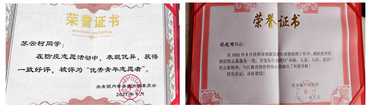 邵俊茹、張可可、蘇云柯、張起明、范伊靜、李瀅欣、邢婧華、王雙慧、黃晨琳,一個(gè)個(gè)名字躍然出現(xiàn)在各種感謝信和志愿者證書上,這些“功勛章”不僅深切體現(xiàn)了他們的優(yōu)良品質(zhì)和擔(dān)當(dāng)作為的精神風(fēng)貌,更蘊(yùn)含著他們背后的默默付出和詮釋青年學(xué)子責(zé)任與使命的實(shí)際行動(dòng)。交通卡口執(zhí)勤、核酸檢測(cè)登記、防疫知識(shí)宣傳、消殺重點(diǎn)場(chǎng)所、入戶排查實(shí)名登記、為居家隔離人員上門服務(wù),他們?cè)谘籽紫娜眨晃房崾睿y而上,積極投入抗疫一線工作,主動(dòng)承擔(dān)起防疫工作中“守門員”、“宣傳員”、“戰(zhàn)斗員”、“保障員”的角色,盡自己所能共同筑起阻擊新冠疫情的重要防線。