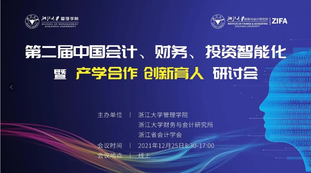 當(dāng)前,人工智能、大數(shù)據(jù)、云計(jì)算、區(qū)塊鏈等信息技術(shù)的發(fā)展日新月異,已經(jīng)深刻地影響了商業(yè)實(shí)踐創(chuàng)新和新商科的建設(shè)與發(fā)展。會(huì)計(jì)、財(cái)務(wù)、投資智能化領(lǐng)域快速的實(shí)踐創(chuàng)新和對(duì)智能財(cái)會(huì)人才的迫切需求,已經(jīng)引起了中國(guó)財(cái)務(wù)和會(huì)計(jì)學(xué)界的高度關(guān)注。2021年12月25日上午8:30到下午17:00,由浙江大學(xué)管理學(xué)院、浙江大學(xué)財(cái)務(wù)與會(huì)計(jì)研究所、浙江省會(huì)計(jì)學(xué)會(huì)聯(lián)合主辦的第二屆中國(guó)會(huì)計(jì)、財(cái)務(wù)、投資智能化暨產(chǎn)學(xué)合作創(chuàng)新育人研討會(huì)在線上舉行。高校知名專家學(xué)者、業(yè)界精英共聚云端。是一次不可多得的學(xué)習(xí)機(jī)會(huì)。