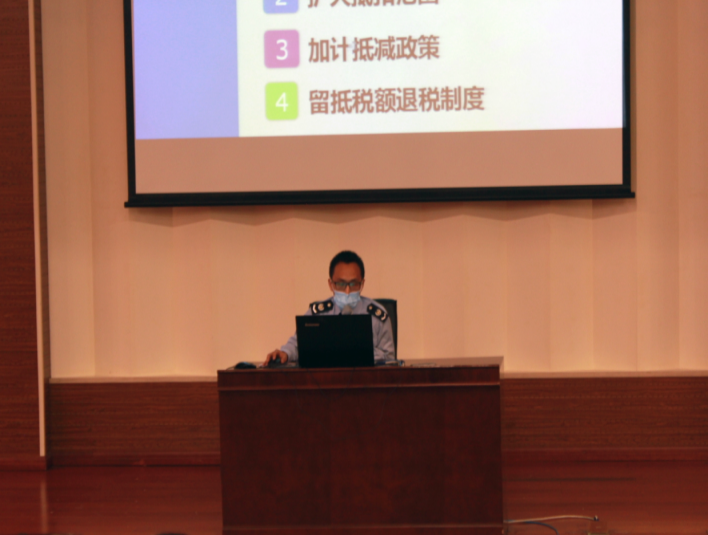 首先由李建勇講師就近階段增值稅改革相關政策為大家介紹了國家最新增值稅改革、擴大進項稅抵扣范圍、提高小規模納稅人免征額等多項減稅降費舉措;夏奇峰講師為大家講解了社保費概念,介紹了天津市社保稅征現狀;宋振昌講師為大家詳細介紹了企業所得稅相關優惠政策;劉振海講師深入淺出地為大家解讀了新個人所得稅法,從提高個稅起征點、增加專項附加扣除、個人所得稅計算等方面說明了國家稅改紅利。