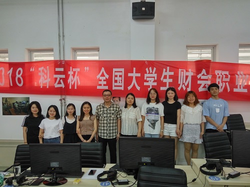 6月2日,另一場由中國商業(yè)會(huì)計(jì)學(xué)會(huì)主辦,廈門科云信息科技有限公司承辦,由全國近300所本科高等院校選派的400多支隊(duì)伍參加的2018年“科云杯”全國大學(xué)生財(cái)會(huì)職業(yè)能力大賽全國網(wǎng)絡(luò)賽也成功舉行。管理學(xué)院學(xué)子首次參加此次大賽,通過校內(nèi)選拔,最終由15級會(huì)計(jì)專業(yè)和財(cái)務(wù)管理專業(yè)共8名同學(xué)組成的兩支代表隊(duì)參加了比賽(第一隊(duì)參賽同學(xué):王宏、武欣、劉丹丹、王欣;第二隊(duì)參賽同學(xué):何袁慧、溫靖、陳金鳳、何春妹),陳鋒、韓俊靜擔(dān)任此次比賽指導(dǎo)教師。最終第二隊(duì)同學(xué)獲得了此次大賽大區(qū)三等獎(jiǎng)的好成績。