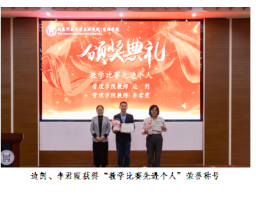 教師代表任潔以《“競教研”深度融合 共創管理學院新成績》為題進行發言,感謝管理學院為師生成長發展提供的專業平臺,希望教師以賽促學促教,進一步為管理學院營造了銳意進取、追求卓越的學術氛圍。