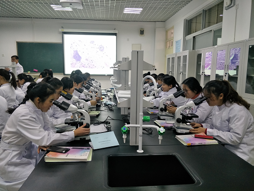 11月21日下午護理系醫(yī)學基礎實驗課正式開課。教務處長張建華老師與韓苗苗老師親臨5-105《人體形態(tài)學》實驗室觀摩了賈明昭教授的實踐課,并給予高度評價。
