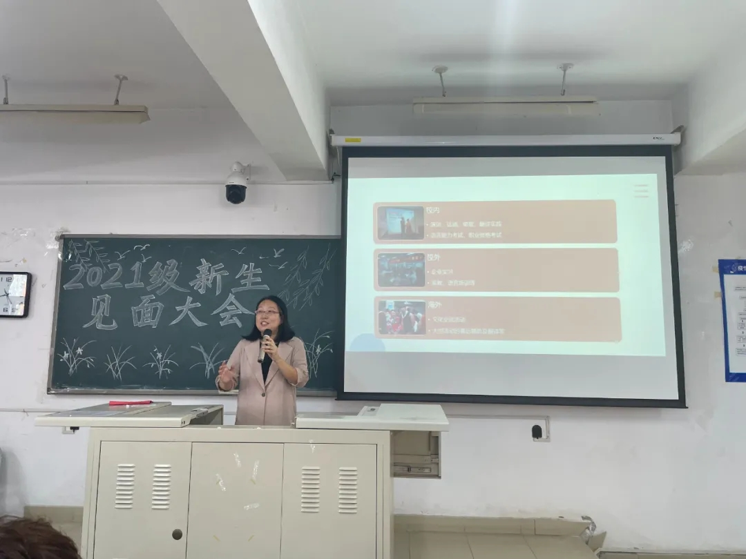 2021年9月22日,北京科技大學天津學院外國語學院2021級新生見面會在8教203召開。外國語學院院長張國敬、黨總支書記兼副院長張添善、辦公室主任耿睿、分團委書記李萌、英專教研室主任張媛、日語教研室主任孟彤、朝鮮語教師韓旭、等出席本次新生見面會。本次新生見面會由新生輔導員李鈺主持。