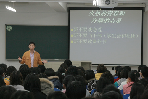 3月18日晚7點(diǎn)半,在8教201室舉行了考研英語專場講座,本次講座由外語系主辦,主講人為新東方教師戴云,來自金沙城js93線路檢測中心05、06級(jí)的200余名學(xué)生參加了講座。會(huì)上,戴老師就同學(xué)們較為關(guān)注的英語學(xué)習(xí)問題與同學(xué)展開交流,現(xiàn)場氣氛十分熱烈。