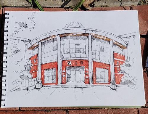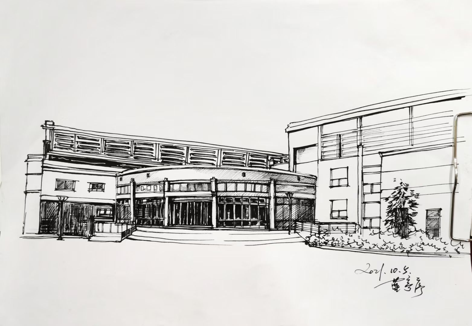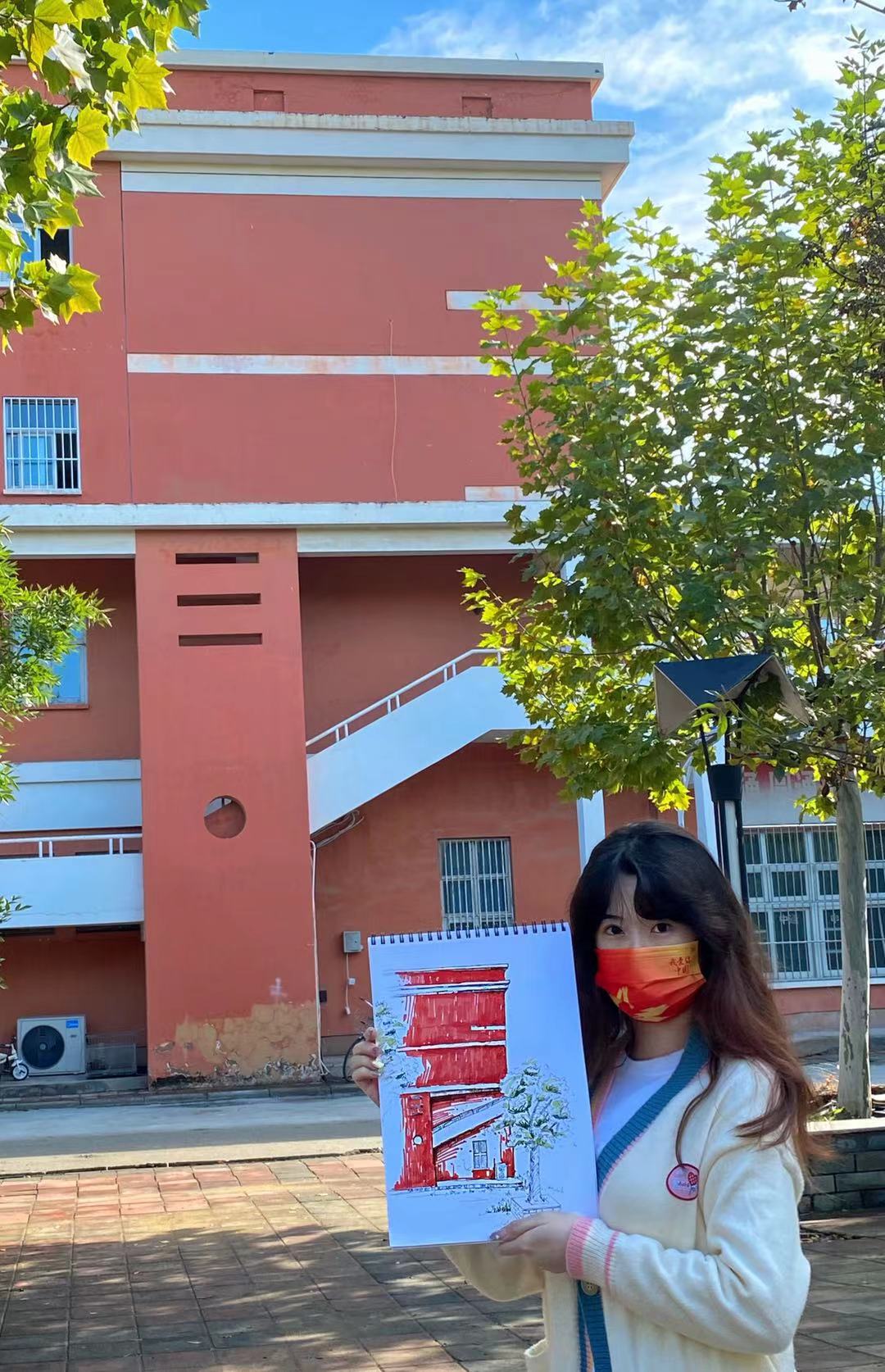 正直國慶期間,同學們在校園佩戴“我愛你中國”紅色口罩,在校園寫生。大家對熟悉的校園環境精心選擇寫生角度,用心描繪校園的美。本次校園風景寫生主要圍繞校園圖書館、教學樓、宿舍樓、教師公寓等風景,采用鋼筆速寫與水彩寫生的表現形式。專業教師帶領學生感受校園景色,讓學生對校園有真情實感,將感情用畫筆注入到自己的作品中。